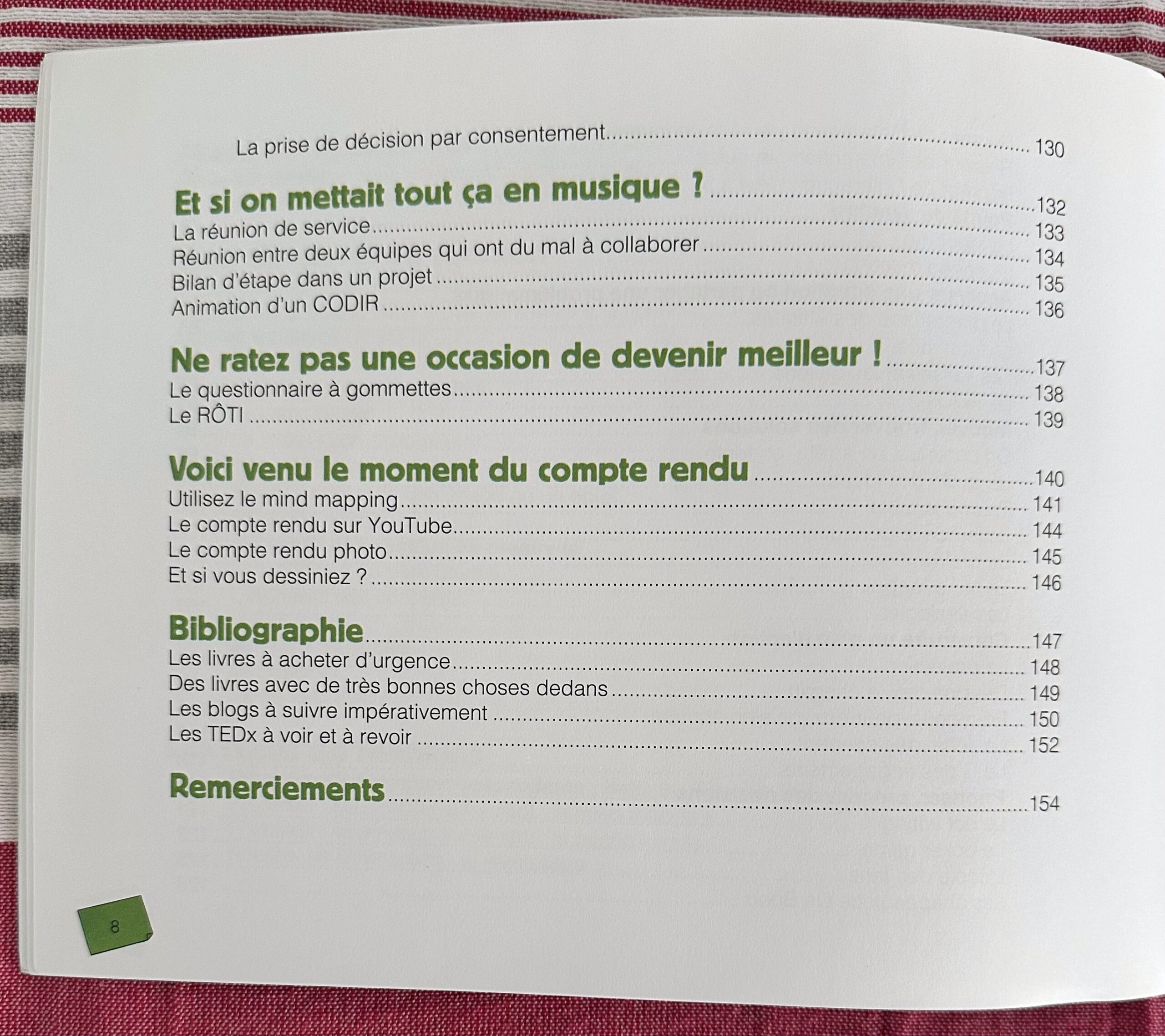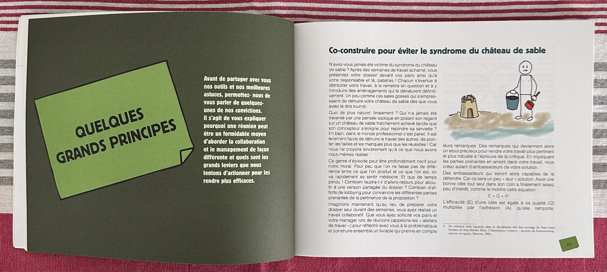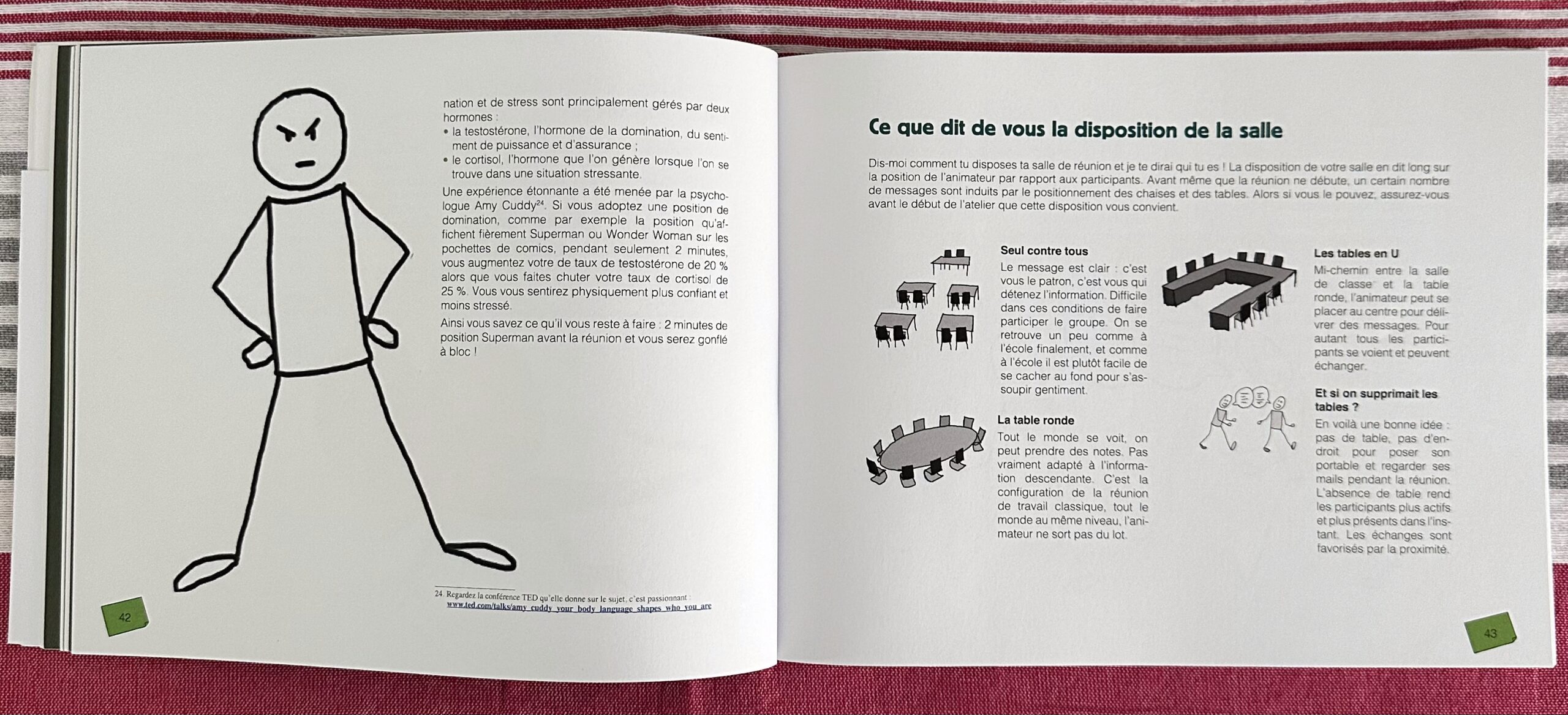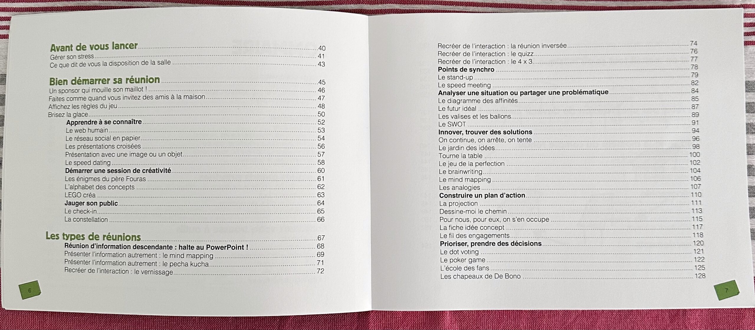 Cet ouvrage s’adresse à tous ceux qui sont amenés à organiser des réunions ou à en vivre, et constitue un guide pour à la fois survivre aux réunions et aussi profiter de la richesse du collectif que celles-ci offrent Pour ce faire, et proposer des techniques plus efficaces que les formats classiques de réunions, les auteurs convoquent ici agilité, créativité, facilitation, design thinking, gaming, co-construction et toutes les tendances business du moment. Ils sont allés chercher dans ces domaines les meilleures pratiques, puis les ont testées et adaptées pour construire ce recueil des meilleures pratiques et les rendre accessibles à tous. Sur un ton décalé et humoristique, cet ouvrage permet de se constituer une réserve d’outils indispensables pour rendre une réunion plus efficace, permettant de faciliter les échanges et les prises de décision.