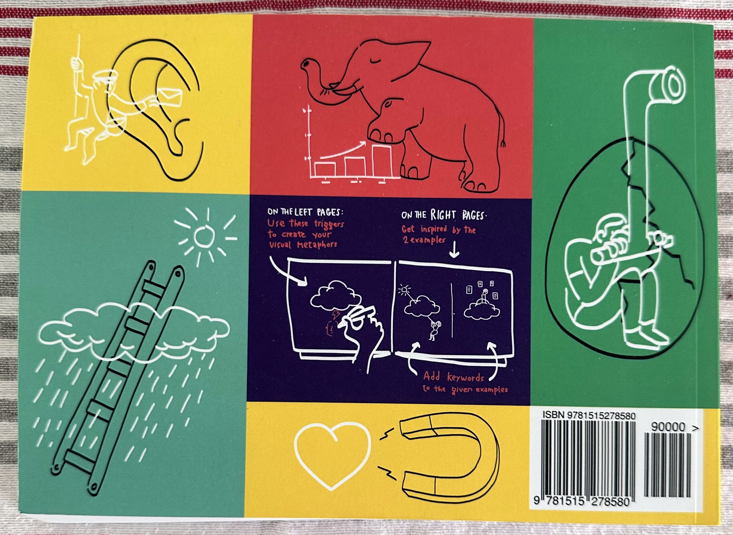 Ce cahier d’activités inspirant contient 100 déclencheurs visuels et 200 métaphores visuelles. L’idée est simple : sur les pages de gauche, vous trouverez le concept de déclencheur, où vous pouvez ajouter vos dessins pour créer une métaphore visuelle. Besoin d’inspiration ? Inspirez-vous des deux exemples sur les pages de droite. Les possibilités sont infinies. Une fois vos métaphores visuelles créées, vous pouvez utiliser les dessins comme un livre de coloriage. Amusez-vous !